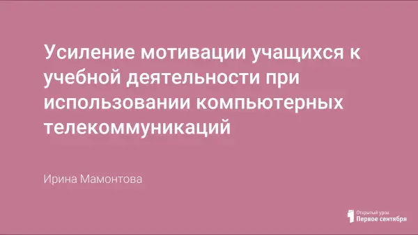 Мотивация - важный компонент регуляции любой деятельности человека. В различные периоды жизни человека значимыми становятся разные виды деятельности. Для подростка необходима учебная деятельность как основа последующего успешного функционирования в обществе, соответственно необходимо развитие мотивации обучения. Информационно-коммуникационные технологии являются одними из средств развития такой мотивации.
