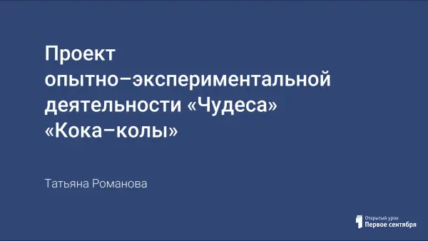 Данная работа представляет собой проект опытной деятельности детей старшего дошкольного возраста. Исследование включает в себя описание 6 опытов с "Кока-колой" с выводами, обоснование актуальности выбранной проблемы исследования. Также представлена краткая история вопроса, описаны этапы работы над проектом, предварительная и последующая работа.