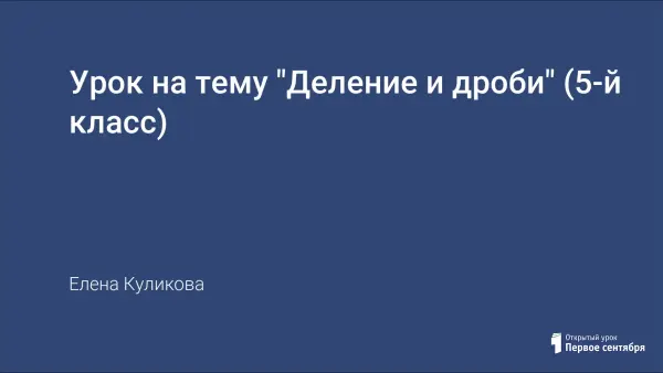 Данная работа представляет собой разработку урока на тему «Деление и дроби» (по учебнику Виленкина). Тип урока – усвоение новых знаний.