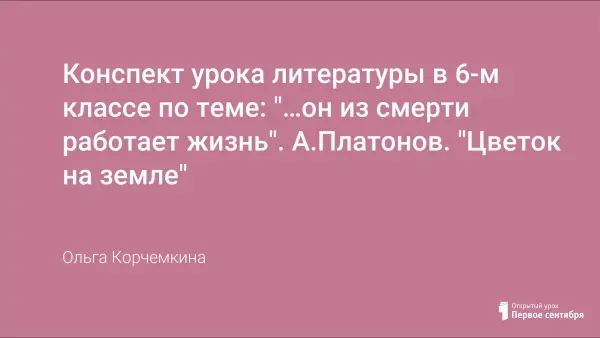 Урок является вторым после изучения рассказа А.П. Платонова "Неизвестный цветок", проводится в 6-м классе по учебнику В.Ю. Свиридовой. Урок закрепляет навыки выразительного чтения и анализа лирического произведения; учит ребят выполнять сопоставительный анализ произведений.