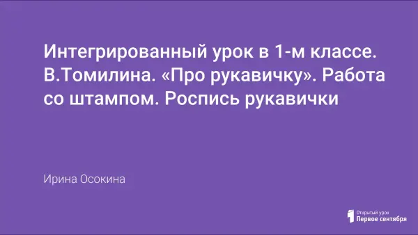 Интегрированный урок внеклассного чтения и художественного труда в 1-м классе, на котором дети не только знакомятся с литературными произведениями, учатся понимать образный язык, обогащают чувственный, нравственный и познавательный опыт, развивают творческие способности, но и создают своё "творение", используя технику "штампа".