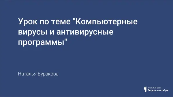 На уроке объясняется понятие "защита информации", "компьютерный вирус"; рассматриваются различные классификации вирусов и методы защиты от них; учащиеся знакомятся с различными антивирусными программами.