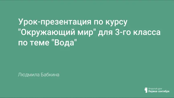 На уроке учащиеся познакомятся со свойствами воды, научатся определять по свойствам воды возможность употребления ее в пищу, повторят значение экологически чистой воды для жизни всего живого на Земле.