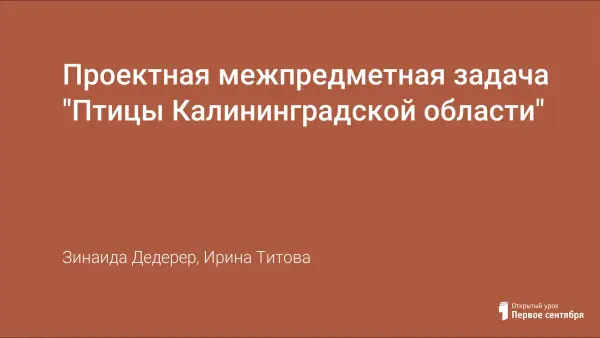 Цели урока: расширить знания детей о птицах Калининградской области; учить детей наблюдать объекты окружающего мира; познакомить с разнообразием мира птиц; дать представление об условиях, необходимых для их жизни, особенностях питания и строения.