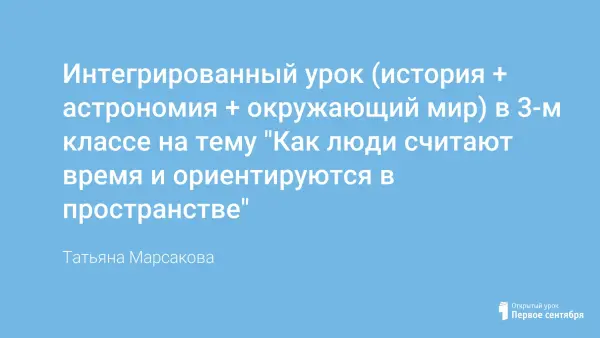 На уроке учащиеся знакомятся с такими понятиями, как пространство и время. Использование интеграции позволяет учителю показать детям связь между системой исчисления «исторического времени» и повседневной формой счета времени. Одновременно идет повторение трех измерений пространства и у детей формируется абстрактное мышление.