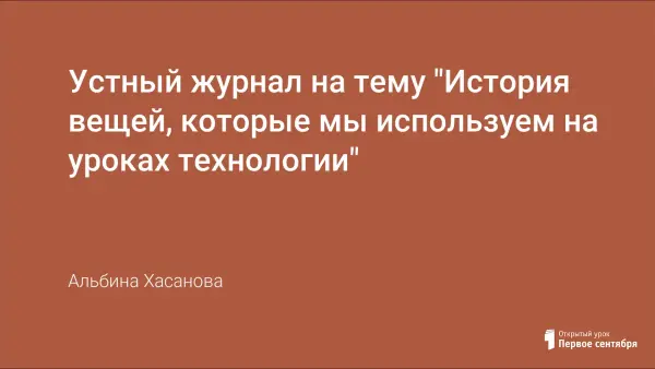 Каждая страница этого журнала посвящена истории одного предмета. Устный журнал можно провести для учащихся 4-го класса с целью знакомства с предметом и преподавателем технологии. К проведению мероприятия привлекаются учащиеся старших классов.
