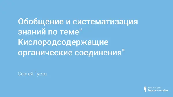 Урок проводится с целью систематизации и закрепления знания учащихся о свойствах, получении и применении кислородсодержащих органических соединений. Мотивация, актуализация знаний и умений проводится очень коротко, с помощью фронтальных вопросов. Главный этап урока - обобщение и систематизация материала, который предполагает самостоятельные задания репродуктивного характера.