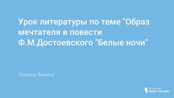 Данная статья представляет собой разработку урока литературы для 9-го класса по изучению произведения Ф.М. Достоевского "Белые ночи". В ходе урока учащиеся работают с текстом произведения, используется презентация, составленная учителем, проверяется знание текста (используются тесты, составленные в программе Microsoft Office Excel 2003).