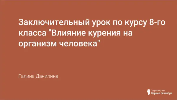 Представлен заключительный урок по курсу 8-го класса "Влияние курения на организм человека".