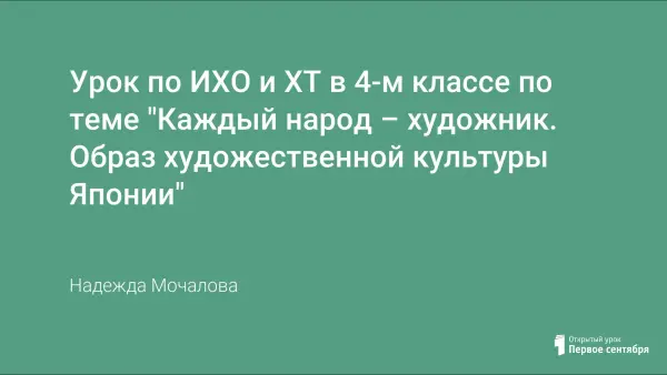Тип урока – изучение нового материала. Форма проведения урока – комбинированный с использованием ИКТ. Для учащихся проводится заочное знакомство с культурой Японии. Материалы урока могут быть полезны не только для преподавателей ИЗО, но и для преподавателей МХК, а также для тех, кто интересуется искусством Японии.