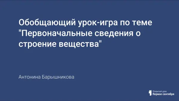 Обобщающий урок проводится в форме творческой игры. Ученики живут в этой игре конкретной жизнью, раскрывая свое понимание явлений, фактов окружающего мира, демонстрируя опыты, знакомясь с историей открытия броуновского движения. Урок сопровождается экспериментами и презентацией в среде PowerPoint.
