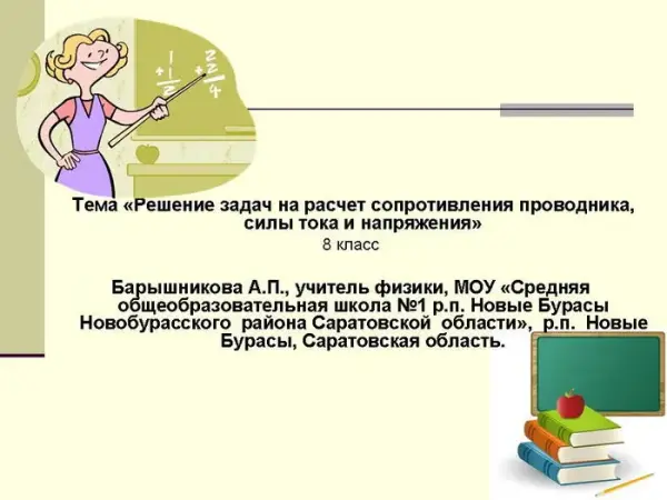 Решение задач на расчет сопротивления проводника, силы тока и напряжения