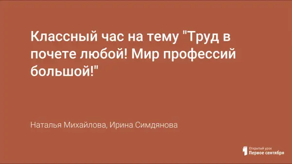 Классный час на тему "Труд в почете любой! Мир профессий большой!"