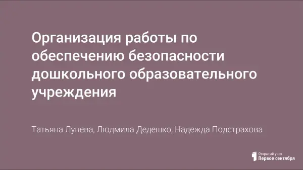 Организация работы по обеспечению безопасности дошкольного образовательного учреждения