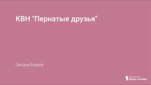 Занятие проводится в форме КВН с целью расширить знания учащихся о пернатом мире Кузбасса, содействовать воспитанию чувства доброты, сопереживания, сопричастности ко всему живому и прекрасному, что нас окружает.