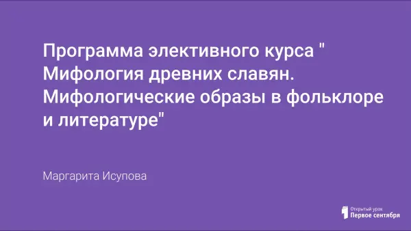 Программа элективного курса ориентирована на освоение содержания мифов, на изучение особенностей мировоззрения пращуров, нашедшего отражение в жанрах фольклора и литературы. Программа включает тематическое планирование и виды домашних заданий. Отдельные темы курса могут быть изучены на уроках в классах гуманитарного профиля или на занятиях факультатива.