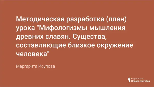 Занятие строится по принципу проекта, основным видом деятельности становится групповая работа. В ходе освоения темы каждая группа готовит и представляет определенный блок информации о домовых, кикиморах, овинниках. На основании этого материала анализируются произведения фольклора и литературы: заговоры и пословицы, статьи А.Блока и В.Даля, отрывки из повести В.Распутина "Прощание с Матерой", стихотворения С.Есенина о деревьях.