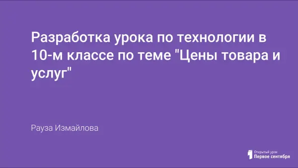 Урок проводится с целью сформировать у учащихся представление о составляющих цену товара и услуг, научить их определять оптовую, отпускную и розничную цены изделия. Воспитывать предпринимательскую культуру. А также используется презентация по теме.