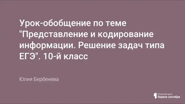 Цель урока: обобщить и систематизировать знания, умения и навыки по темам "Системы счисления", "Кодирование информации" при решении задач типа ЕГЭ; развивать умение анализировать условие задачи, решение, полученный результат, алгоритмическое и логическое мышление; воспитывать внимательность, аккуратность.
