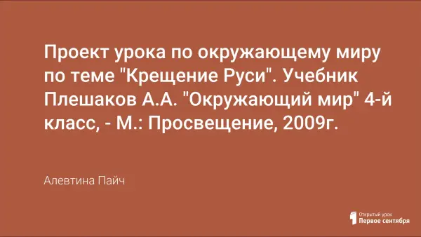 Урок даёт возможность учителю показать благотворную роль принятия христианства на Руси нашими далекими предками.