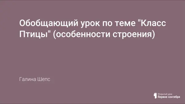 Урок повторения и обобщения знаний по теме «Тип Хордовые. Класс Птицы», на котором учащиеся систематизируют знания об особенностях строения, жизнедеятельности птиц, связанных с полетом, приспособленности их к жизни в разнообразных условиях наземной среды, происхождении птиц.