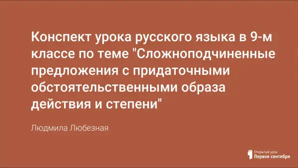 Конспект урока русского языка в 9-м классе по теме "Сложноподчиненные предложения с придаточными обстоятельственными образа действия и степени"