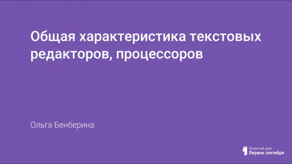 Данный урок содержит историю обработки текстовых документов, общую характеристику текстового редактора, общую характеристику текстового процессора. Опорный конспект для учащихся и практическую работу. Рассмотрены некоторые наиболее распространенные форматы текстовых файлов.