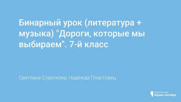 Бинарный урок (литература + музыка) "Дороги, которые мы выбираем". 7-й класс