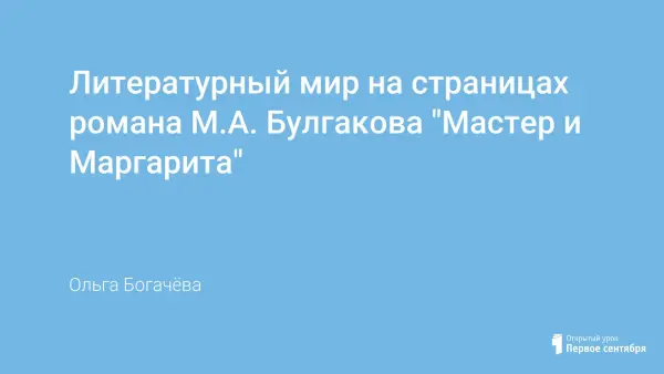 В данном материале представлен урок, где показана литературная Москва 30-х годов в романе. Позволяет выявить авторское отношение к литературной среде, сформировать представление о булгаковском понимании сущности писательского труда, сформулировать личностное отношение учащихся к поднятой проблеме и героям романа.