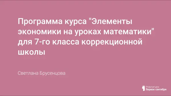 Программа для учащихся 7-го класса школы для детей с нарушением интеллекта направлена на формирование знаний и представлений об экономических взаимоотношениях людей в обществе. Основная цель её – формирование практических умений, связанных с различными видами жизнедеятельности.
