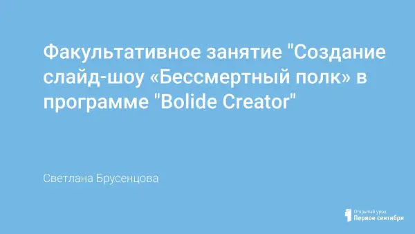Цель урока: сформировать представление об основных принципах создания слайд-шоу с помощью средств программы Bolide Slideshow Creator.