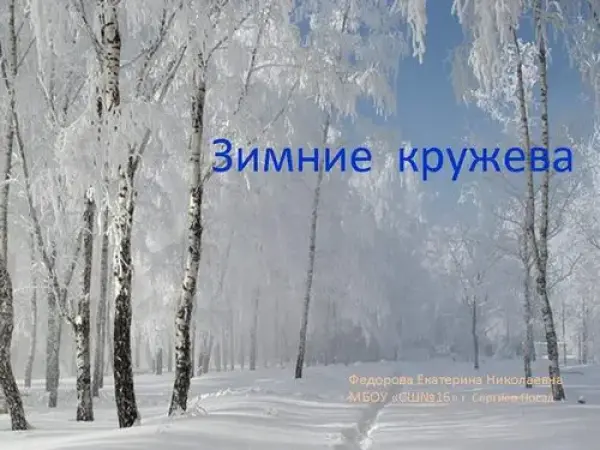 Дети в увлекательной форме совершают экскурсию в зимний лес, любуются картинами зимнего пейзажа. На экскурсии учатся наблюдать, сравнивать, любить и оберегать родную природу.