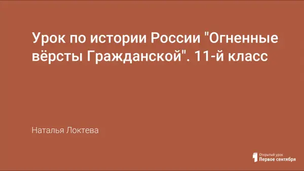 Урок по истории России предназначен для проведения в 11-м классе. Рассмотрены причины, основные противоборствующие силы Гражданской войны. Выделены этапы Гражданской войны, которым дана общая характеристика. Выявлены причины победы "красных" и поражения "белых" в вооружённом противостоянии. Присутствует электронное приложение к уроку.