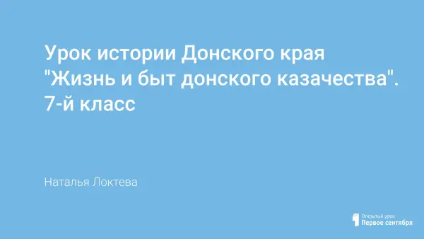 Цели урока: на основании исторического материала познакомить учащихся с особенностями быта, традициями и укладами жизни донских казаков; прививать чувство патриотизма, уважения к традициям и истории своего края, чувство любви к малой родине.