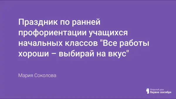 Проведение праздника имеет цель: в занимательной и интересной форме для учащихся начальной школы представить свои знания о мире профессий в рамках программы по ранней профориентации учащихся, проводимой школьной психологической службой.