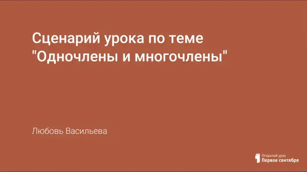 Учащиеся повторяют материал по теме “Степень с натуральным показателем”. На уроке вводятся понятия одночленов и многочленов. В течение урока ученики учатся отличать одночлены от многочленов и приводить многочлены к стандартному виду.