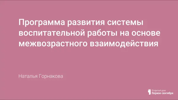 Программа воспитательной работы в условиях экспериментальной работы школы по теме "Организационно-педагогические условия осуществления воспитательного процесса в ходе межвозрастного взаимодействия учащихся в условиях общеобразовательной школы". направлена на организацию внеучебного процесса таким образом, чтобы она способствовала дальнейшему развитию и формированию компетенций.