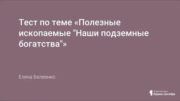 Представлен тест по теме «Полезные ископаемые» для учащихся начальной школы.