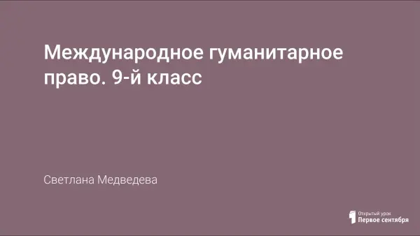 Урок составлен с целью дать школьникам знания об основополагающих принципах и нормах гуманитарного права, способствующих пониманию необходимости регулирования поведения участников вооруженного конфликта; воспитания школьников в духе добра и милосердия, сострадания и уважения к человеческой личности. На уроке использовались технологии: интерактивная беседа, работа с документами и источниками.