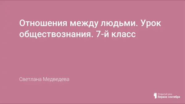 Цель урока: подвести учащихся к пониманию многообразия отношений между людьми. Рассматриваются отличия социальных и межличностных отношений, личных и деловых отношений. Учащиеся подводятся к пониманию – из чего складываются симпатия и антипатия; учатся устанавливать причинно-следственные связи между поступками и взаимоотношениями между людьми.
