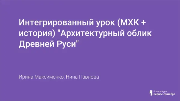 Урок для 10-го класса – урок сообщения и первичного закрепления новых знаний. Урок рассчитан на 2 школьных часа. Позволяет сформировать представление об особенностях архитектуры Древней Руси через межпредметные связи истории и МХК; сформировать умение критически анализировать документальные источники; способствует формированию чувства сопричастности к истории Родины.