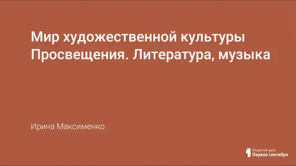 Уроки насыщены материалом, требующим не запоминания, а эмпатии и эмоционального отклика, соотнесения с уже знакомыми учащимся компонентами культуры. Содержание урока завершает изучение духовных исканий и особенностей культурной жизни эпохи Просвещения. Рассматривается преемственность культуры Возрождения и Просвещения, значение культуры в жизни общества. Широкие возможности для знакомства с художественным творчеством Просвещения открывает Интернет. Методологической основой преподавания искусства в школе является положение об искусстве как об особой форме общественного сознания, имеющей образно-личностную природу и отличающейся от сознания исторического.