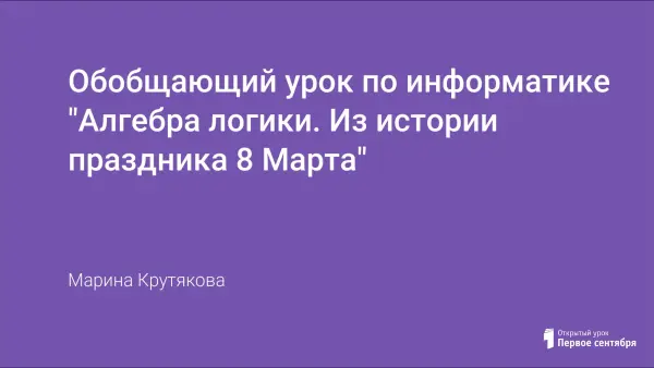 Данный урок проводится как обобщающий по теме «Алгебра логики». Форма проведения – работа в группах. Она позволяет детям по-новому проявить себя. На данном уроке дети повторяют изученный ранее материал и узнают новое из истории празднования 8 Марта. Урок дополняет красочная презентация, которая делает занятие более насыщенным и наглядным.