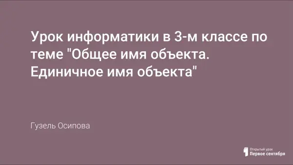На уроде дети учатся отличать общие и единичные имена объектов, выбирать единичные имена для объектов или существ заданной группы, уметь описывать их отличительные признаки в табличном виде.