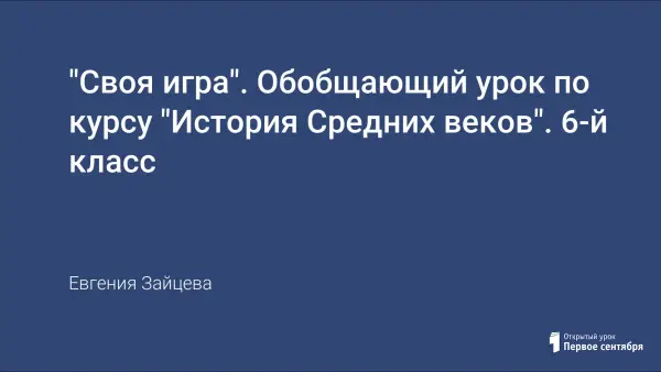 Обобщающий урок в цикле «История Средних веков» проводится в форме викторины «Своя игра». Все вопросы и задания представлены в форме презентации и могут быть использованы любым педагогом.
