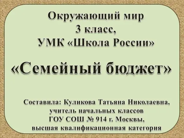 На уроке затронута актуальная жизненная тема. В процессе активной деятельности учащиеся осваивают составление бюджета семьи. Урок построен в соответствии со стандартами II поколения.