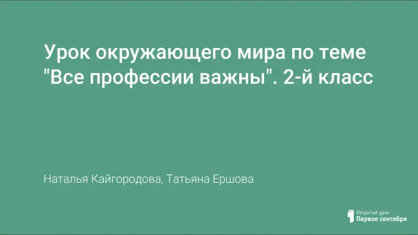 Урок окружающего мира по теме "Все профессии важны". 2-й класс