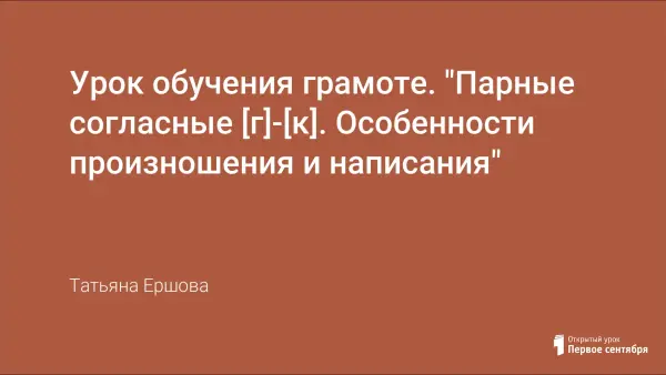 Ученики в процессе работы на данном уроке формируют умение определять слабую и сильную позиции парных согласных [г]–[к] и развивают навык подбора проверочных слов для парных согласных в конце и в середине слов. Работа с учебным материалом развивает орфографическую зоркость, мышление, общеучебные умения и навыки.