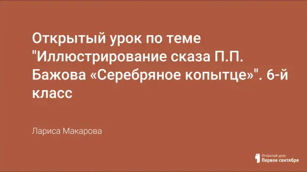 Цель работы: познакомить учащихся с творчеством писателя, дать понятие «сказ», «иллюстрация». Средства ИКТ оптимизируют образовательный процесс наглядными методами обучения. С этой целью создан фильм с иллюстрациями художников и сопровождающийся музыкой. Ученики готовят книгу по сказам П.П. Бажова.