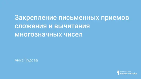 Данный урок проводится в 4-м классе и завершает тему «Сложение и вычитание многозначных чисел». Учебный материал представлен в необычной, игровой форме. Это способствует формированию у учащихся повышенного интереса к предмету, снимает напряжение, которое свойственно многим детям. В результате достигается более прочное усвоение полученных знаний.